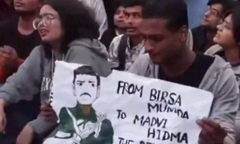 प्रदर्शन में शामिल लोगों ने नक्सली कमांडर माड़वी हिड़मा के पोस्टर लहराए। हिड़मा की तुलना आदिवासी स्वतंत्रता सेनानी बिरसा मुंडा से की गई। हिड़मा को जल, जंगल और जमीन का रखवाला बताया गया। पुलिस ने उनसे बात करनी चाही और देखते ही देखते अचानक कुछ प्रदर्शनकारियों ने पुलिस पर मिर्च स्प्रे से हमला कर दिया। चार पुलिस वाले गंभीर रूप से घायल हैं, जिन्हें अस्पताल में भर्ती कराया गया है।